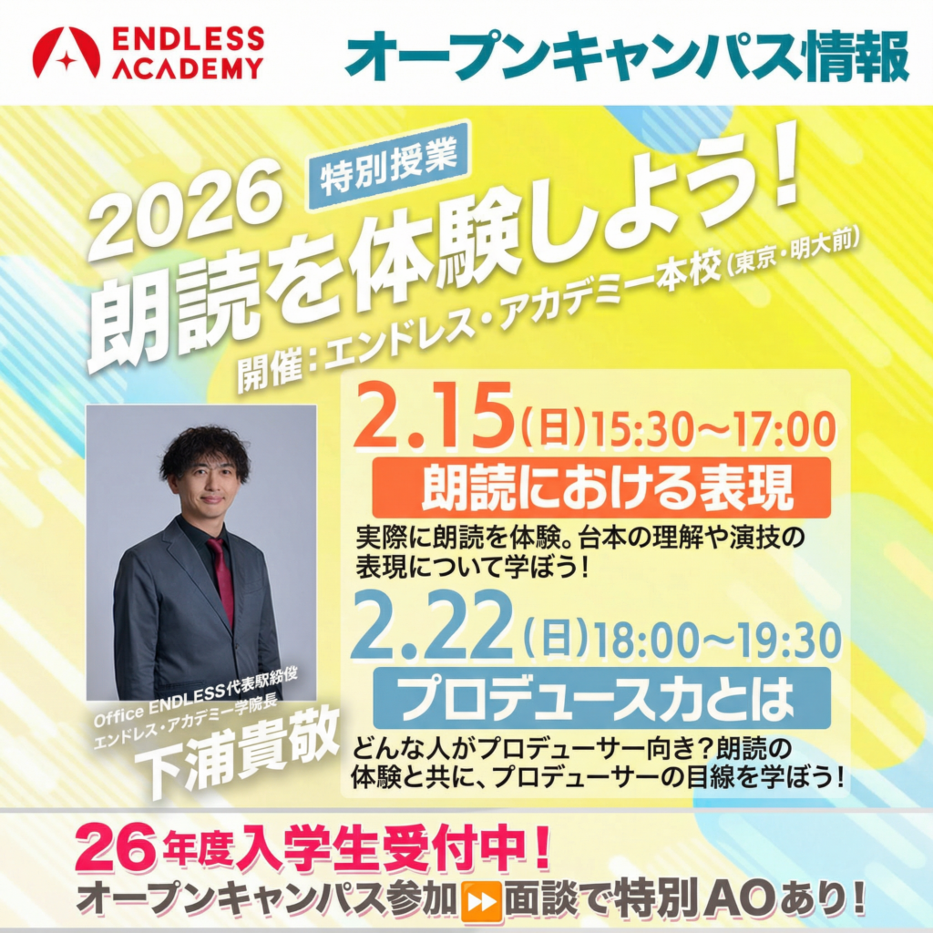 『職業:表現者』を育成する学校が総合芸術学校『エンドレス・アカデミー』です。